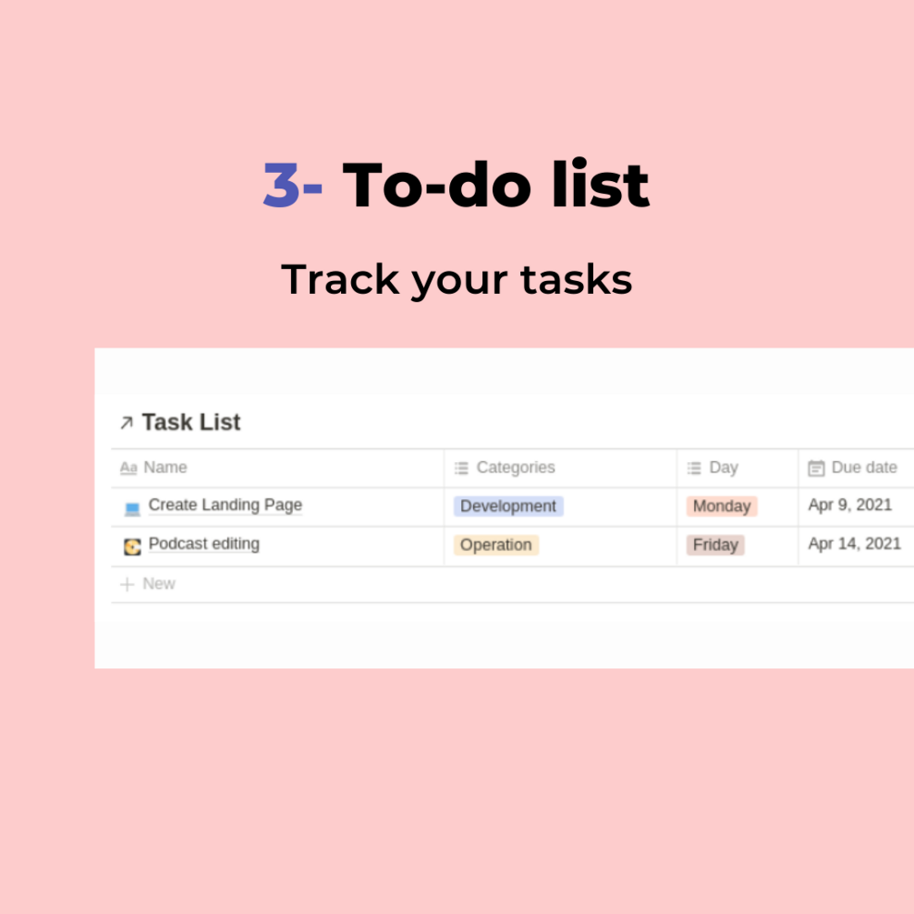 - To-do list : track your tasks